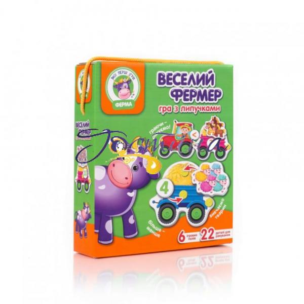 Добрі ласкаві звірята подорожують фермою на тракторі. Приєднуйся та..! Вчися рахувати, запоминай назви тварин, тренуй дрібну моторику, пізнавай навколишній світ. Трактор, причепи та фігурки-деталі виготовлені з міцного картону. Кріпіти на причепи тварин за допомогою липучок, рахуємо… Скільки їх? Приєднайте до причепа відповідну цифру. Порівняймо числа між причепами! Кріпіть знак «більше»/«менше». Рахуємо, складаємо – весело граємо!