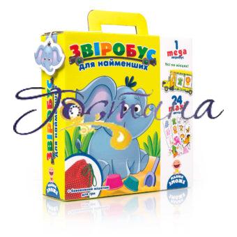 Звіробус вирушає в поїздку. Малюк бере бавовняний мішечок, і гра починається! Виймаємо картонну деталь, розміщуємо по місцях тварин, що на ній зображені. Можна їхати вільно! Ой, чиє це вушко? Частина деталей містить зображення частин тіла звіропасажирів. Малюк розпізнає тварину й розміщує у звіробусі.