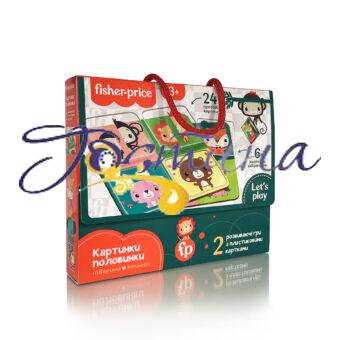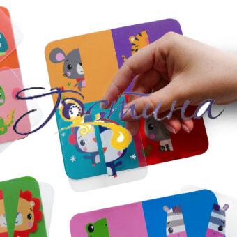 Гра складається з двох комплектів карток. Завдання для малюка – знайти другу половинку для кожної картки, щоб отримати повноцінне зображення.
