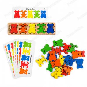 Ведмедики 15 штуки, в п'яти кольорах (жовтий, синій, червоний, зелений, оранжевий), виходить по 3 шт. Кожного кольору.