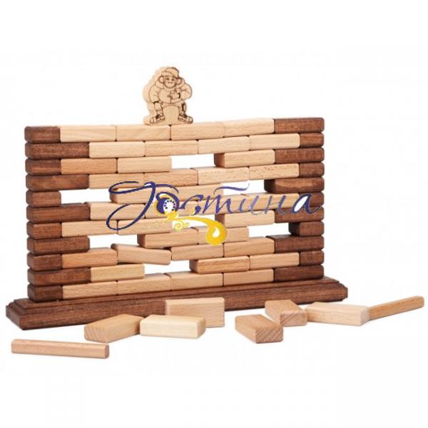 Динамічна настільна гра Злови мавпу настільки проста і зрозуміла, що грати в неї можуть навіть трирічні малюки. Грати можна як одному, так і веселою компанією ловців мавп до 4-х чоловік. Всі компоненти гри виконані з якісного та екологічно чистого матеріалу: цінної і твердої породи дерева, що відносить гру до числа ECO games. При цьому кожен брусочок, цеглинка, фігурка мавпочки і основа стіни зроблені вручну. За своєю механікою гра Злови мавпу нагадує всім відомі ігри з серії Джанга, але разом з цим  мавпочка робить гру відмінною від звичної розбірки веж. Також, на відміну від Джанги, бруски більш мініатюрні і легкі. У грі Злови мавпу гравці повинні блок за блоком розбирати стіну, щоб підібратися ближче до крикливою непосиди, але не допустити її падіння. Перед початком партії потрібно з дерев'яних блоків на спеціальній основі скласти стіну, на якій зверху помістити фігурку мавпочки. Тепер всі гравці повинні взяти в кулак свою волю, запастися терпінням і по черзі акуратно спеціальними дерев'яними паличками виштовхувати з кладки по одній цеглинці. Програє той, у кого або впала мавпочка, або розвлилася стіна  А ось гравець, який ухитрився зловити падаючу мавпочку, стає героїчним рятівником тварин.