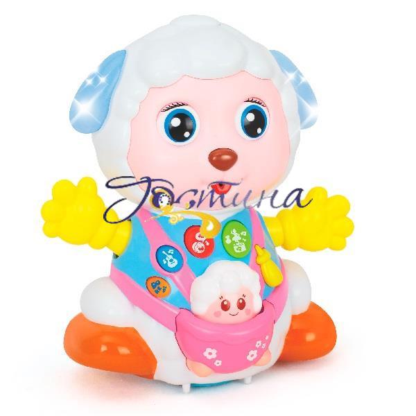 Щаслива овечка-мама і її маленький баранчик танцюють під веселі мелодії. Іграшка змінює напрямок руху при зіткненні з перешкодами. Натискання на кнопки супроводжуються світловими і звуковими ефектами.