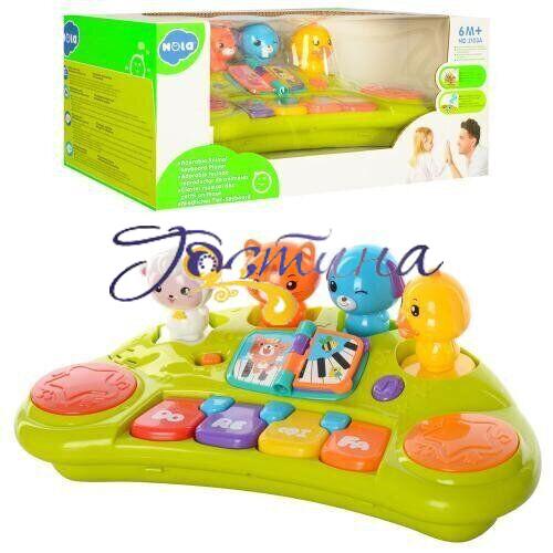 Піаніно зі звірятками зі світловими і звуковими ефектами – це ігровий центр, який допоможе малюкові розвинути слух і музичне сприйняття, а також дрібну моторику рук. Ви можете в ігровій формі вивчити з дитиною назви тварин, кольори і геометричні фігури.Фігурки тварин виймаються, кожна має свій колір і в основі геометричну фігуру: коло, квадрат, зірку, трикутник. Дитина може дістати іграшки і грати ними окремо, а також вчитися вставляти їх назад.Піаніно має два режими звучання. У режимі №1 клавіші піаніно відповідають нотам: до, ре, мі, фа. У режимі №2 чотири клавіші відповідають музичним стилям – кантрі, рок, джаз, класика.Кнопки регулювання гучності допоможуть вибрати комфортний рівень звучання. Іграшка виконана з високоякісного пластику.