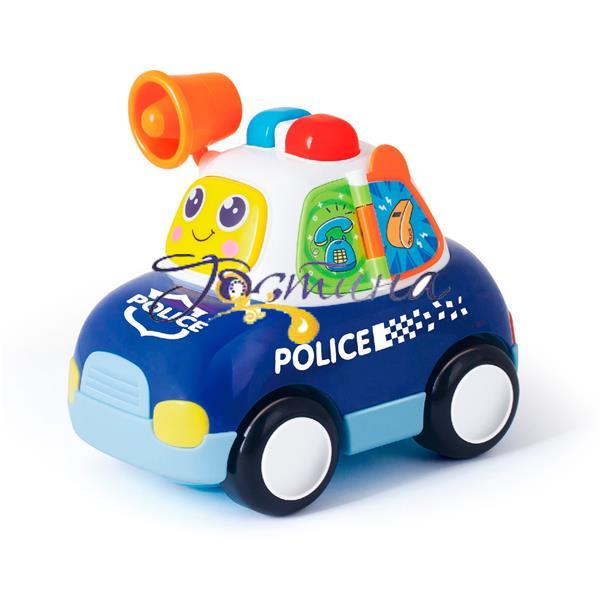 Весела поліцейська машинка зі світловими і звуковими ефектами. Їздить, видає різні звуки, програє мелодії (без слів). Лобове скло у вигляді смайлика і мигалка на даху - це кнопки. Бічні вікна відкриваються. Іграшка підійде для дітей від року.