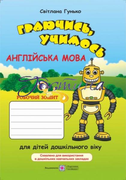 Робочий зошит призначений для продовження процесу вивчення англійської мови дітьми дошкільного віку за сучасною ігровою методикою. Книжка містить вправи на відтворення нових слів мовою рухів, міміки, цікаві логічні завдання, вправи для підготовки руки дитини до листа, завдання-розмальовки. Зошит містить додаток-роз'яснення до використання.
