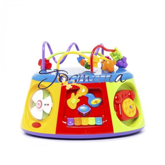 Музичний Мультицентр надовго заволодіє увагою Вашої допитливої дитини. Адже в ньому стільки цікавого! Можна слухати віршики про пори року, улюблені народні пісеньки , грати на музичних інструментах , а мудра сова розповідає про розпорядок дня. Навіть є телефончик . Зверху іграшки міні-лабіринт з різнокольоровими фігурками. Безліч кнопочок , мерехтіння вогників і звукове супроводження не залишать дитину байдужою.