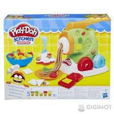 Для цього в наборі є все необхідне: набір формочок, фігурний ніж і інші аксесуари, а в якості тесту - пластилін. Пластилін Play-Doh не прилипає до рук, легко змінює форму і швидко висихає. Якщо необхідно змінити підсохнула деталь, досить змочити її звичайною водою і вона знову стане пластичною. Створений він на основі їстівних продуктів, тому абсолютно безпечний, навіть якщо дитина спробує його на смак або хтось проковтнув. Барвники використані також харчові. Ваша дитина буде в захваті від такого захоплюючого кулінарного заняття! Характеристики У комплекті: установка для створення локшини, аксесуари, 5 баночок пластиліну Play-Doh