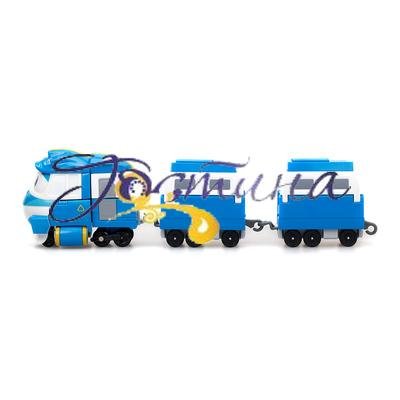 Потужний і швидкий локомотив Кей від торгової марки Silverlit запрошує дитину до захопливої гри за мотивами мультфільму про роботів-поїздів. Кей оснащений потужним мотором, що робить його сильним і дозволяє керувати будівництвом міжконтинентальної залізниці. Поїзд за кілька рухів перетворюється на робота й назад, виготовлений відповідно до оригінального персонажу з мультфільму. Руки та ноги трансформера рухомі. Комплект складається з локомотива Кея та 2 причіпних вагонів. Набір виготовлений з якісного та повністю безпечного пластику.