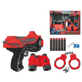 Рольові ігри вкрай важливі для розвитку дитини і для адаптації їх у суспільстві. Саме тому батькам варто звернути увагу на ігрові набори. Діти обожнюють програвати різні життєві ситуації. Купити ігровий набір для своєї дитини, значить забезпечити йому захоплюючу гру на довгий час. Можна рекомендувати для малюків які тільки починають освоювати великий світ дитячого зброї. Іграшки виконані з якісного пластику. У комплекті: пістолет 10 см, бінокль, наручники, кулі-присоски 6 штук.