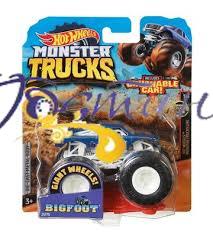 Серія Hot Wheels "Авто-монстри" Позашляховики Monster Jam - це спеціально розроблені потужні машини, висотою 3,5 метра, які встановлені на величезні колеса висотою 66 дюймів і важать як мінімум 5 тонн. Створені для коротких, потужних сплесків швидкості, вони можуть генерувати від 1500 до 2000 кінських сил і здатні розвивати швидкість до 160 кілометрів на годину. Monster Trucks можуть літати на відстань до 38 метрів, перелітаючи понад 14 автомобілів, що стоять пліч-о-пліч, і до 10 метрів у висоту.
