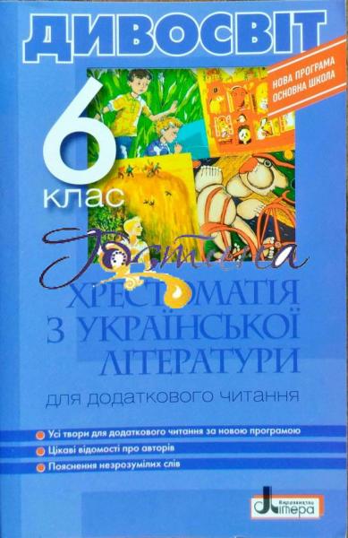 У хрестоматії подано твори фольклору та художньої літератури, визначені для додаткового читання з української літератури в 6 класі (згідно з новою діючою програмою з української літератури). Видання призначене для учнів загальноосвітніх навчальних закладів, педагогів, батьків, медичних працівників.