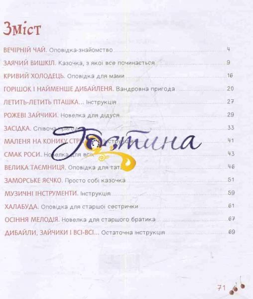 Химерна, кумедна, а часом і трішечки сумовита повість-гра у казках, оповідках, новелках, жартах, смішках, анекдотах, віршиках, пісеньках, вигадках, а іноді й достовірних історіях, які можна і треба не лише розігрувати, а й просто гратися в них усією родиною (інструкції додаються) – про ймовірні та неймовірні, веселі й ніжно-печальні, дивні й просто житейські пригоди Тата-Дибайла і Мами-Дибайли, Бабусі й Дідуся Дибайлів, Братика-Дибайлика і Сестрички-Дибайлочки, а головне – про Найменше Дибайленя, яке всіх їх уміє «завести».