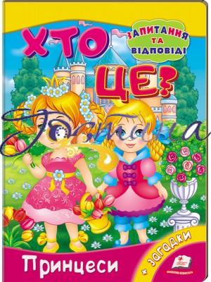 Ця книжка 'Хто це? Принцеси. Запитання та відповіді' адресується всім нашим маленьким прекрасним принцесам.  А хіба серед нас є принцеси? Адже вони живуть лише в казках! Невже в нашому буденному житті, поруч із нами трапляються справжнісінькі принцеси?  Кого ж називають такими чудовими, чарівними словами? Напевно, якихось ну зовсім незвичайних дівчаток.  Виявляється, усе геть не так, як про це багато хто думає!  А от як саме, хто такі принцеси і чому абсолютно кожна наша маленька читачка, якщо має бажання, стане не просто принцесою, а саме прекрасною принцесою, допоможе розібратися нова дитяча книга Дівчатка дізнаються відповіді на дуже цікаву для них тему — про манери та етикет юних коронованих осіб. А їм, у свою чергу, пропонується поміркувати й відповісти на спеціально підготовлені запитання, які допоможуть стати справжніми прекрасними принцесами.