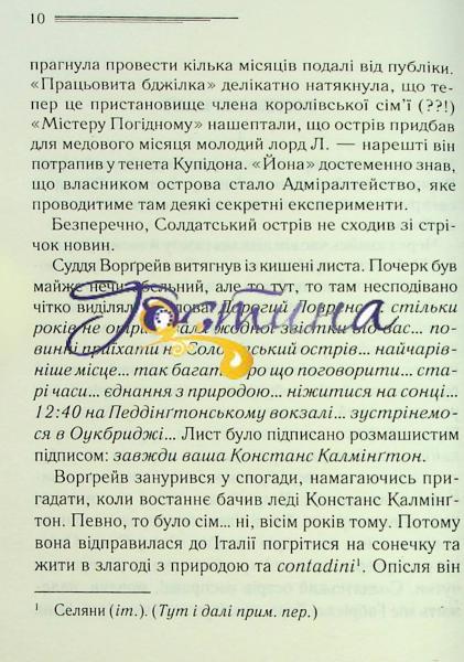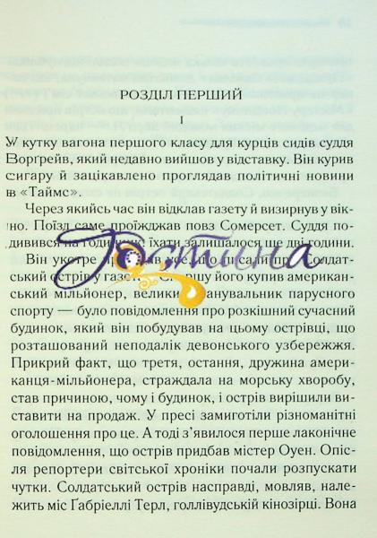 Десятеро незнайомців опинилися на далекому Солдатському острові: усі отримали дивне запрошення приїхати сюди, до розкішного будинку. Однак поки вони не розуміють, хто і для чого їх викликав… Через певний час починається жахіття: хтось жорстоко й вигадливо вбиває гостей, а зі столу, на якому стояло рівно десять порцелянових статуеток, перед кожним убивством зникає одна… Хто за цим стоїть? Як ця моторошна історія пов’язана із дитячою лічилкою? І, головне, хто наступний?