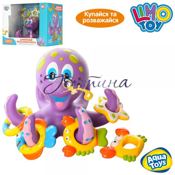 Іграшковий восьминіг - незамінна річ для батьків. Іграшка для ванної зробить купання улюбленим заняттям дитини. Іграшка стимулюватиме розвиток, сенсорні відчуття малюків. Дитина зможе спостерігати за іграшкою, її деталями і рухом води. Таке дозвілля сприятиме поліпшенню координації дій і рухів дитини. Яскраві кольори і чіткі форми привернуть увагу дитини. Восьминіг для ванної зробить купання цікавим і різноманітним. Малюк із задоволенням буде гратись з восьминогом і занурюватися в казковий світ. У набір входить восьминіг, 5 круглих форм. Така іграшка допоможе розвинути дрібну моторику, координацію, зорову пам'ять і фантазію.