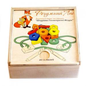 Розвиваюча іграшка «Геометричні фігури» від українського виробника «Розумний Лис» призначена для розвитку дрібної моторики в малюків. Усі фігури виготовлені з натурального дерева та покриті безпечною фарбою.