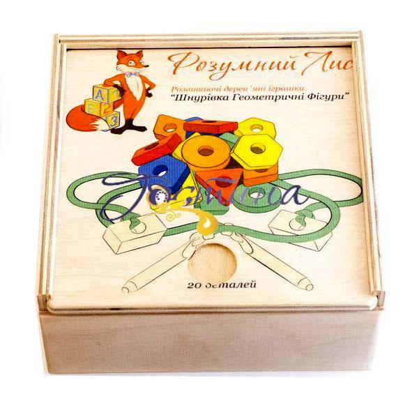 Шнурівка «Геометричні фігури» ТМ «Розумний Лис» допомагає в розвитку сенсомоторної координації, дрібної моторики рук, просторового орієнтування, мовлення, сприйняття розуміння понять «вправо», «вліво», «вгору», «вниз», а також у формуванні навички шнурування та зав’язування шнурка на бант.