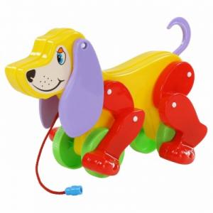 Іграшка-каталка Полісся Бобі 5434 - це яскрава різнокольорова собачка, що випускається у двох колірних комбінаціях - з червоними та оранжевими лапами. Іграшку можна штовхати туди-сюди за корпус або возити за мотузку. Лапи собаки з'єднані з колесами і рухаються при їх обертанні. Милі собачі вушка також рухливі і малюк може ворушити їх ручками. Граючи з собачкою малюк розвиває фантазію та колірне сприйняття, покращує тактильні навички та моторику рук. Іграшка-каталка виготовляється за ліцензією італійської Cavallino Giocattoli, Srl. з екологічно чистих матеріалів та барвників.