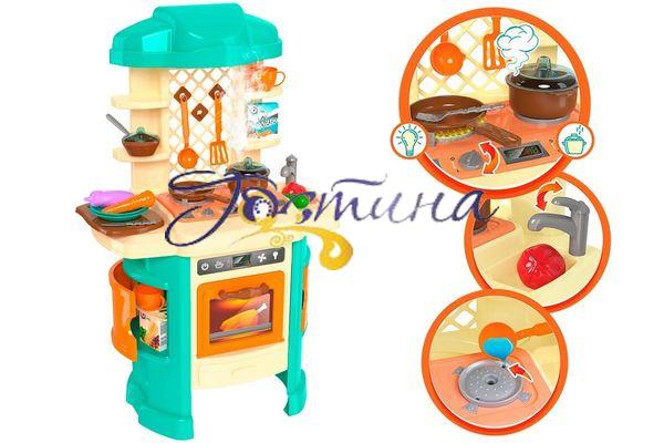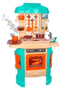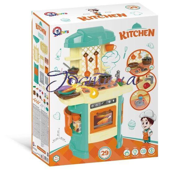 Іграшка Технок "Кухня ТехноК" (5637) Нова інтерактивна «Кухня ТехноК» вражає своєю реалістичністю. У цій іграшці малюка зачарує різноманітність ефектів: яскрава червона підсвітка конфорки, звукові ефекти («шипіння» і «булькання»), а головне — неймовірний ефект пара. З каструлі, в якій щось «вариться», піднімається білий пар. Але батьки можуть не хвилюватися — пар тільки вдала імітація, він насправді холодний і безпечний для дитини. Найкраще це спостерігати в темній каструльці з прозорою кришкою. Вашу увагу приверне колірне рішення іграшковій кухні. У новинці ми вирішили відмовитися від класичної, для таких іграшок, рожевої гами. Поєднання спокійних кремового і бірюзового, на думку дизайнерів, найкраще передає домашній затишок справжньої кухні. Таке колірне рішення буде відповідати не тільки мріям маленьких господинь, а і майбутніх шеф-кухарів. І, хто знає, можливо ця кухня стане для малюка першим кроком у захоплюючий світ сучасної «високої кулінарії». В наборі разом з іграшковій кухні весь необхідний посуд для приготування смачних страв. Є каструлька з прозорою кришкою (з отворами для проходження пара), сковорідка, дошка для нарізки і яскраві овочі. Дві картонні коробочки з «спагетті» та «пластівці» для приготування корисних сніданків, а для чаювання — дві чашки з блюдечками і цукорниця. А після смачного обіду — треба помити посуд. Для цього є мийка із краном і мочалка у формі квіточки. Такі сюжетно-рольові ігри добре розвивають фантазію і мислення дітей, допомагають сформувати навички приготування їжі та прибирання, вивчити правила поведінки з технікою на кухні. Будь ласка, дотримуйтесь правил експлуатації іграшковій кухні, зазначених в докладній інструкції. Комплектація: Витяжка стільниця стійка передня панель варильна панель (електронний модуль) дверцята духовки ніжка - 2 шт. задня панель дно духовки полку бічна - 2 шт. гайка - 2 шт. кран гачок - 3 шт. овочі (огірок, морква, баклажан, помідор) коробочка - 2 шт. дощечка каструля кришка сковорідка чашка - 2 шт. блюдце - 2 шт. цукорниця з кришкою велика вилка шумівка лопатка черпак ложка - 2 шт. вилка - 2 шт. ніж - 2 шт. тарілка - 2 шт. губка комплект паперових наклейок Вага 3140 м Габаритні розміри 81 х 51 х 30 см Розміри упаковки 61.5 х 20 х 48 см Товар сертифікований. Країна виробника: Україна
