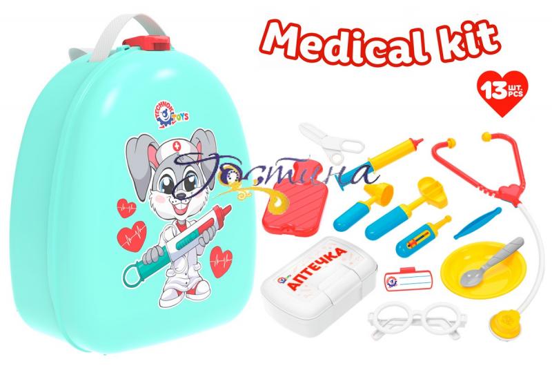 Медична аптечка, яка поспішає на допомогу тваринам, лялькам та іншим іграшкам. У рюкзаку є всі необхідні інструменти для надання першої медичної допомоги.