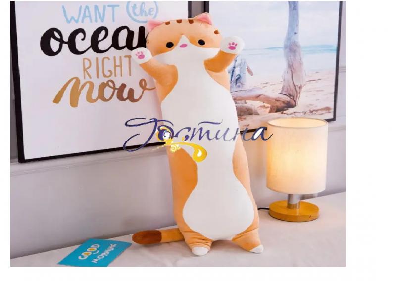 Довга форма подушки дозволяє засипати у зручній та корисній для хребта та м'язів позі. Іграшка приємна навпомацки, її можна використовувати як зручну м'яку іграшку-подушку антистрес або оригінальний предмет інтер'єру, як декоративну подушку для ліжка, дивана, як валик для спини та голови. З нею приємно обійматися і засипати в обійми. Всі деталі іграшки вишиті, тому можна не боятися, що дитина пораниться. У потайному шві захована блискавка, завдяки цьому при забрудненні кішки можна зняти чохол і випрати. Іграшку можна використовувати, як подушку для вагітних та новонароджених.