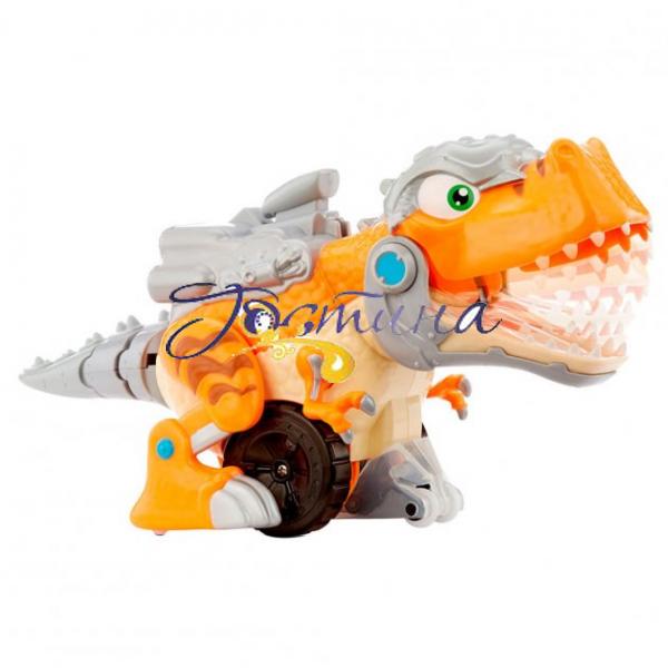 Інтерактивна іграшка на р/у - АТАКА ТИРАННОЗАВРА - це простий у використанні динозавр на радіокеруванні, який ходить, гарчить і «кусається». .Динозавр може обертатися навколо себе! Ніхто не підкрадеться! Коли динозавр рухається вперед, він широко відкриває пащу і «кусається». Динозавр реалістично рухається і махає хвостом. Для роботи динозавра потрібні 4 батарейки типу AAA, для роботи пульта потрібні 3 батарейки типу AAA дітей від 4 років