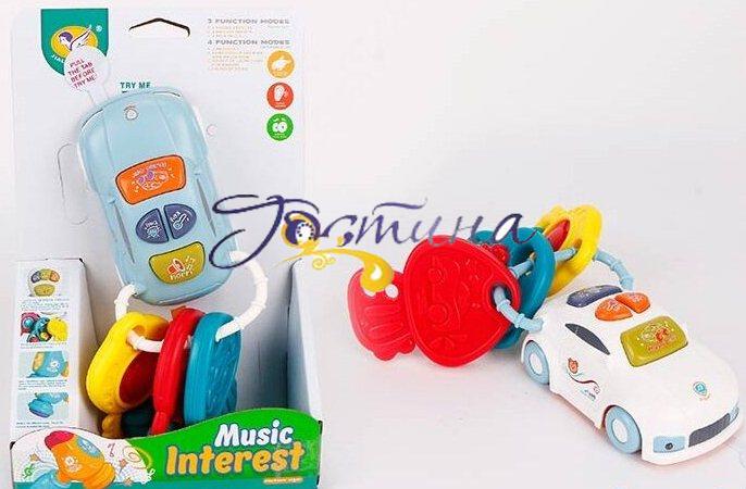 Дитяче брязкальце у формі брелка стане дуже захоплюючою і такий милозвучною іграшкою для Вашого малюка. Яскрава і контрастна модель, дуже приємна на дотик. У брязкальця гармонійно підібрані кольори, а машинка оснащена 4-ма функціональними кнопками, які відтворюють різні світлові і звукові ефекти. Модель брязкальця поєднує в собі кільце для брелка, машинку з ефектами і 3 ключика, кожен з яких має особливість. Всі елементи іграшки зібрані і скріплені між собою воєдино за допомогою кільця. Ефекти машинки: - кнопка на лобовому склі - відтворює мелодії і активує підсвітку фар - кнопка на задньому склі - активує гудок і світіння фар - ліва кнопка на даху - відтворює реалістичні звуки запалювання - права кнопка на даху - відтворює звуки сигналізації