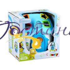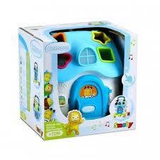 Барвистий, акуратний і симпатичний сортер Smoby Cotoons Будинок блакитний (110403) - прекрасна навчальна іграшка, розрахована на дітей старше шести місяців. Проведена модель з якісного, міцного і нетоксичного пластика. Важливо, що яскраві елементи позбавлені гострих кутів для виключення дитячого травматизму. Сама ж модель виконана у вигляді біло-блакитного будиночка, прикрашеного потішними малюнками. На його даху розташовані отвори різних геометричних фігур і зручна для перенесення ручка. Крім того, конструкція Smoby Cotoons Будинок блакитний (110403) оснащена віконцями і вхідний дверцятами для більш веселих і захоплюючих ігор. Граючи, хлопці будуть вивчати кольору і різноманітність фігур, а ще логічно мислити, підбираючи правильну клітинку для кожної кольорової детальки.