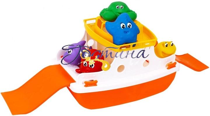 Іграшка "Пором ТехноК" із фігурками на борту неодмінно сподобається малюкам. Пором — це неймовірне поєднання краси та функціональності. Його конструкція дає змогу добре плавати та перевозити улюблені іграшки. Пором обладнаний двома трапами, які ховаються в корпусі та не заважають руху. У верхній частині розміщена рубка капітана, палуба для пасажирів та майданчик для гвинтокрила. Спеціальні отвори в корпусі допоможуть легко злити воду з порома та висушити його. Так іграшка залишатиметься чистою та безпечною для дітей. Звірятка, які зручно розмістилися на палубі — різноманітні представники водного світу: акула, восьминіг, морська зірка, бегемотик, жаба та краб. Надруковані очі методом тамподруку додають іграшкам радісних емоцій і краси, з ними звірі ніби оживають. Звірятка чудово тримаються на воді, що дає змогу дітям придумувати різноманітні ігри. А ще фігурки можна використовувати для навчання: вивчати кольори, назви тварин, робити перші кроки в рахунку.