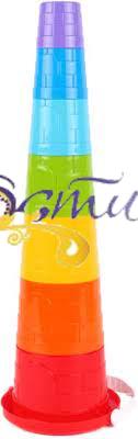 Яскрава пірамідка в райдужних кольорах. Особливістю іграшки є те, що всі формочки можна зібрати в кругле відерце з ручкою. Таку іграшку зручно переносити, брати із собою на прогулянку, у пісочницю чи дитячий садок.