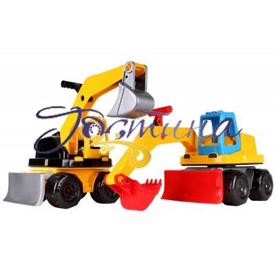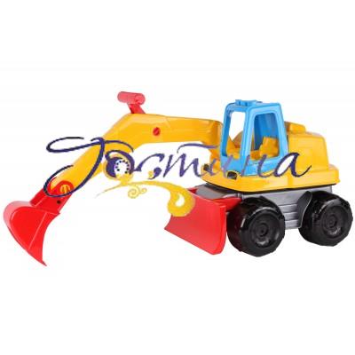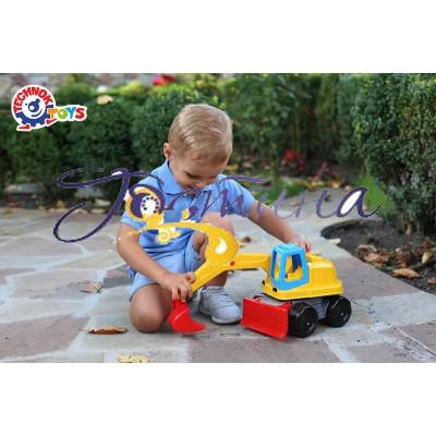 Серію тракторів ТМ «ТехноК» доповнив сучасний колісний трактор із стильним дизайном. Іграшка вирізняється оригінальною кольоровою гамою та ергономічною будовою. Кабіна іграшкового трактора обертається на 180 градусів, а ківш регулюється за допомогою спеціального важеля. Колеса трактора великі, міцні та надійні. Водночас, вони чудово прокручуються, тому іграшка є достатньо мобільною.