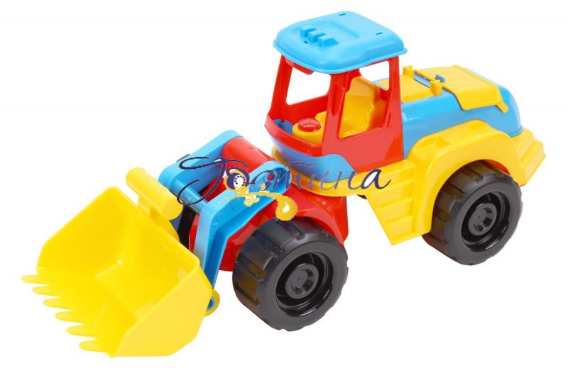 Особливість нового трактора -рухоме (шарнірне) з'єднання кабіни та ківша. Це дає можливість трактору працювати не тільки у кар'єрах, а також на невеликих будівельних площадках. Великі міцні колеса дозволяють машині долати різноманітні перешкоди. У комфортній відкритій кабіні зручно розміститься улюблена іграшка. Кришка моторного відділу відкривається і малюк зможе оглянути двигун та вчасно провести обслуговування або ремонт.