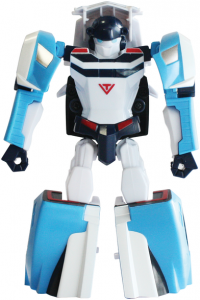 У комплекті: робот-трансформер, 1 паперовий перегоновий трек.