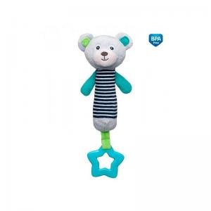 Іграшка багатофункціональна з пищалкою і прорізувачем. Розвиває зорову, слухову і рухову координацію, моторикy пальців, вчить розрізняти кольори і фактуру, позитивно впливає на розвиток дитини