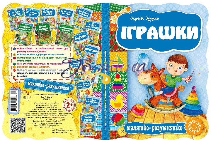 Улюбленим іграшкам малят, якими дитина може бавитися вдома, на вулиці, в садку і в пісочниці, навіть у ванні, присвячено вірші цієї книги.;До серії книжок «Малятко-розумнятко» увійшли найцікавіші вірші від кращих дитячих поетів, які розкривають найпотрібніші та найкорисніші тими для розвитку маленької дитини. Добру поезію доповнюють дотепні та яскраві малюнки від кращих художниківілюстраторів. Хвиляста форма книжки активізує тактильну діяльність дитини, стимулюючи її загальний розвиток.;Книжки схвалені педагогами та психологами і відповідають санітарним нормам.;Для читання дорослими дітям.