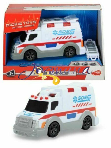 Машина "швидкої допомоги" від компанії Dickie - це відмінна машинка для дитячих ігор. Вона дуже схожа на справжню, її мигалки можуть світитися, вона вміє видавати характерний звук сирени, і, крім цього, натиснувши на спеціальну кнопку, можна відкрити задні дверцята, через яку всередину машинки зможе в'їхати повністю функціональна маленька каталка.