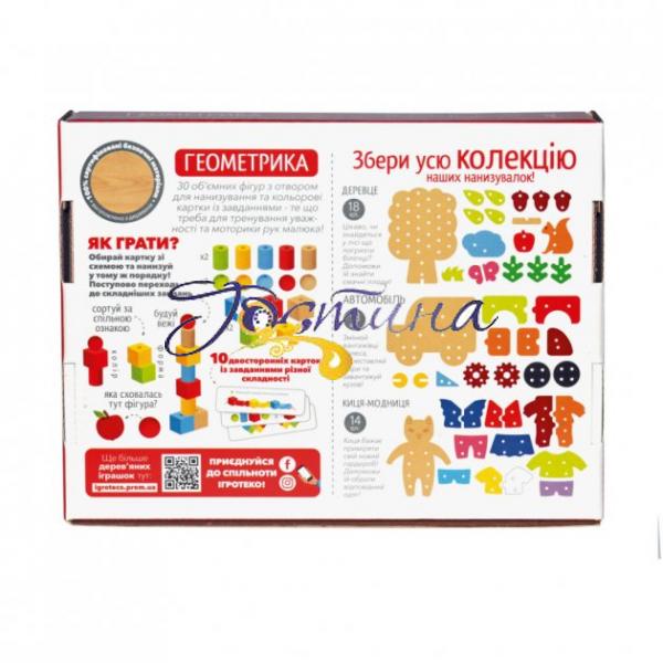 Гра Геометрія шнурівки є навчальною грою, суть якої полягає в нанизуванні фігурок на мотузці в певному порядку.