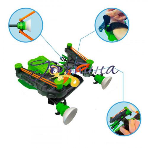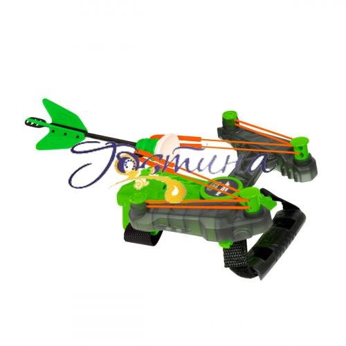 Справжня сила у твоїх руках! Іграшкова цибуля на зап'ясті серії 'Air Storm' - WRIST BOW - інноваційна іграшка, що поєднує компактну форму і потужну силу. Запатентована технологія запуску. Стріли запускати легко і швидко - просто зачепите стрілу за петлі, відтягніть і запускайте точно в ціль! Форма цибулі підходить як для шульги, так і для правші. Швидка перезарядка гарантує перевагу у битвах! Компактна форма. Цибуля легка і компактна, кріплення на зап'ясті регулюється для комфорту дітей і дорослих. Ідеальна іграшка для літнього відпочинку усієї родини на природі! Висока ефективність. Стріли із присосками прилипають майже до всього. Вони виготовлені з ультралегкої піни і можуть летіти на відстань до 12 м! Будинки та на вулиці. Стріли мають м'які наконечники-присоски, тому вони є повністю безпечними для використання в приміщенні. Один із друзями. Влаштовуйте змагання та битви між двома командами, або просто практикуйтеся у стрільбі по мішені. До речі, мета знаходиться на обороті упаковки! У комплекті: цибуля іграшкова на зап'ястя, 3 стріли з наконечниками-присосками. Колір зелений. Вибирайте луки одного кольору або різних, залежно від того, за яку команду гратимете. Помаранчевий – колір команди Соколов, зелений – Волков. Гра з цибулею Air Storm сприяє розвитку фізичної активності, просторовому сприйняттю та вмінню грати. Зроби свій найкращий постріл з луком Zing! Рекомендовано для дітей віком від 8 років.