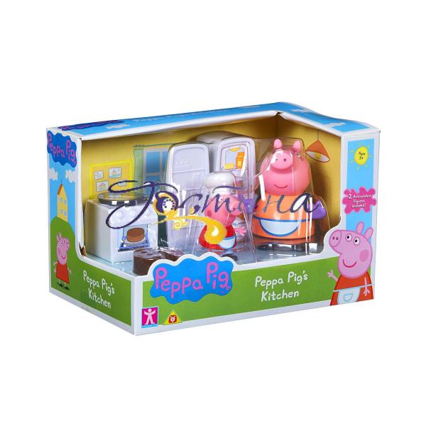 Зустрічайте героїв популярного мультфільму Свинка Пеппа '! Сьогодні Пеппа справжній шеф-кухар! Вона вирішила допомогти мамі Свинці по господарству і порадувати сім'ю і друзів! Поки мама смажить на плиті яєчню, Пеппа приготує нам пиріг! А всі потрібні інгредієнти вона може знайти в холодильнику! Фігурки можуть сидіти, стояти, рухати ручками і ніжками. Це чудовий подарунок будь-якому малюкові. Добрий світ свинки Пеппі! У наборі: холодильникплитасковорідкапирігФігурка МамиФігурка ПеппіЗа допомогою такого набору діти будуть освоювати нові знання і навички спілкування, розвивати кругозір і уяву.