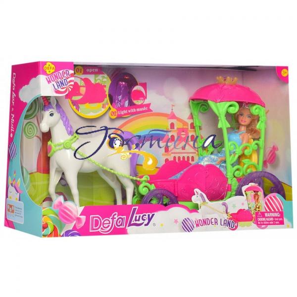 Ігровий набір для дівчинки карета з конем і лялькою DEFA звук, світло (8423)