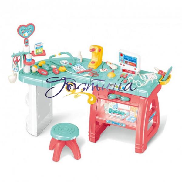 Доктор 660-61, стол90-77-47см, стільчик, стетоскоп, інструменти, 27предм, зв, св, бат, кор, 79-55-13см
