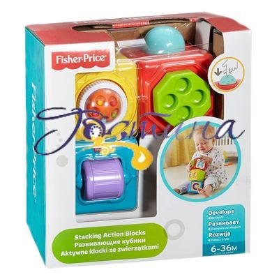 Яскравий набір кубиків, які рухаються від Fisher-Price, захопить вашого малюка в забавну і розвиваючу гру. У наборі три кубика. Кожна з граней кубика - це цікава гра, в якій малюкові належить дізнатися щось нове. Одні грані познайомлять дитину з цифрами, інші з літерами, решта з тваринами і просто повеселять цікавими штучками. Кубики можна складати в пірамідку і активувати їх руху натискаючи тільки на кнопочку на верхньому кубику. Рухомі елементи на кожному кубику відрізняються - коліщатко, барабан, диск.