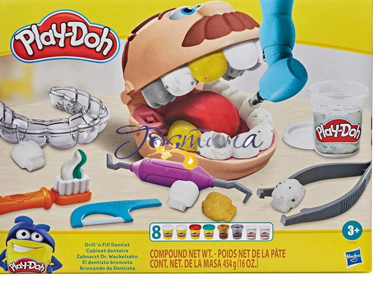 Діти можуть змусити пацієнта висунути свій язик Play-Doh, а потім використати форму для зубів, щоб легко створити цілий ряд зубів Play-Doh. Використовуйте ручну обертову іграшкову дриль, щоб покопатися в цих порожнинах, а потім вичавіть пломби Play-Doh із шприцевого екструдера, щоб зафіксувати їх. Набір включає 10 іграшкових стоматологічних інструментів 8 банок Play-Doh. Для дітей від 3-х років....