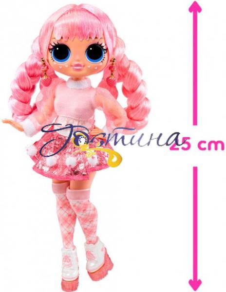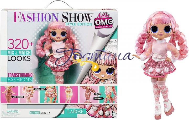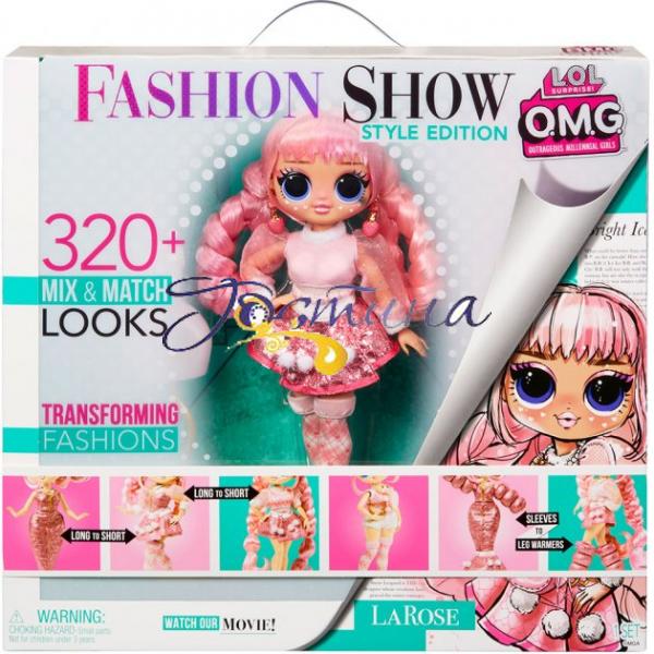 Нові лялечки серії «O.M.G. Fashion Show» від L.O.L. Surprise! – це яскраві та неординарні представниці світу моди. Вони люблять створювати нові образи та мріють потрапити на обкладинку модного журналу! Ла Роуз – стильна та яскрава. Любить все перламутрове та блискуче. Любить трансформувати одяг та створювати щось нове – подивіться, як змінюється його одяг! І вона ніколи не забуває про аксесуари! Велика та яскрава лялечка, новий одяг та аксесуари. Гарне довге волосся – можна міняти зачіски щодня! У наборі є різні аксесуари для створення модного образу. Лялька має шарнірні руки, що дає змогу вигадувати ще більше цікавих сценаріїв для гри. Підставка для ляльки у комплекті.