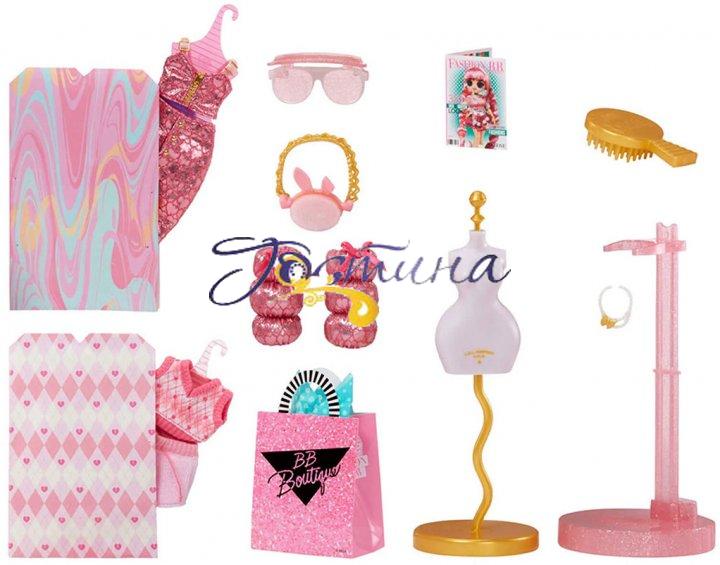 До ігрового набору входить: модна лялька L.O.L. Surprise! серії «Fashion show», одяг, взуття, гребінець для волосся, сережки, підставка, аксесуари, модний журнал.