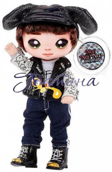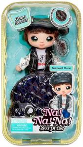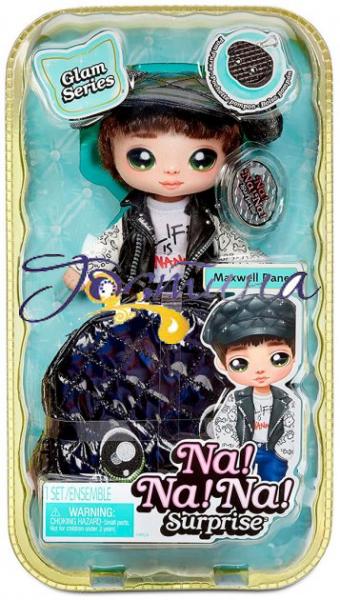 Зустрічайте нових лялечок Na! Na! Na! Surprise і серію Glam. Тепер іграшки-вихованці виготовлені з гламурної тканини з металічним ефектом і стануть чудовим стильним аксесуаром для дівчинки. Вибирайте улюблену колекційну м'яку ляльку й іграшку-улюбленця на кліпсі або зберіть усю колекцію! Максвелл Дейн одягнений у чорний капелюх і світшот з кумедним принтом. Його улюбленець — чорний песик. Особливості: відкрийте бирку, щоб більше дізнатися про свою ляльку; завдяки кліпсі можна прикріпити іграшку-улюбленця до сумки або рюкзака. До набору входять: лялька; іграшка на кліпсі; комплект одягу взуття; капелюшок. Рекомендований для дітей віком від 3 років.