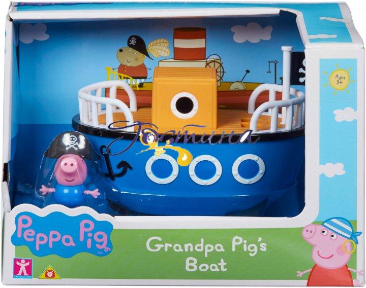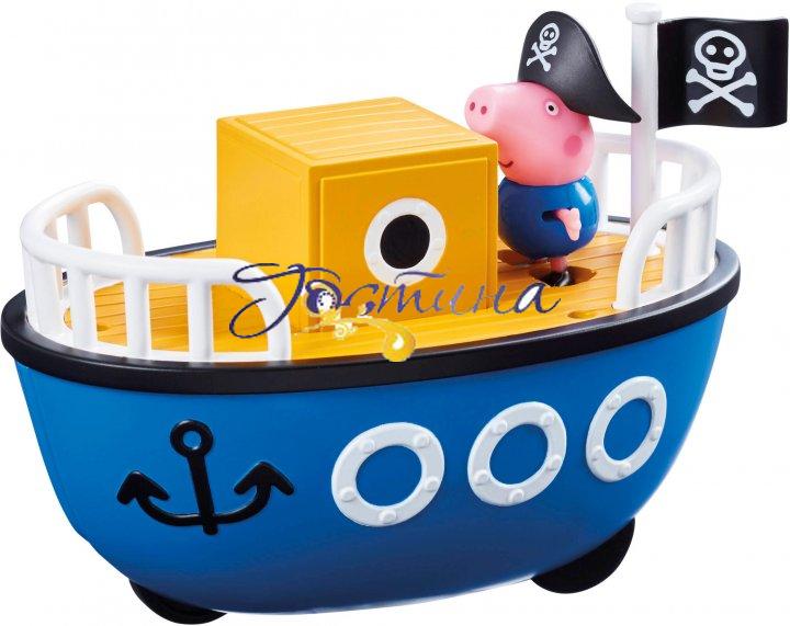 Зустрічайте героїв популярного мультфільму Свинка Пеппа. Хочеш покататися на піратському кораблику разом із Джорджем? Тоді стрибай на борт — і повний вперед! Сам кораблик обладнаний коліщатками, тож малюк може катати його поверхнею. Фігурка може сидіти, стояти, рухати ручками та ніжками. Це чудовий подарунок будь-якому малюкові. Добрий світ Свинки Пеппи.