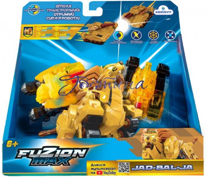 «Fuzion Max» — це супертранспорт, який у разі зіткнення трансформується у фантастичних роботів! Зіштовхни, трансформуй та отримай суперробота! Через портал у небі на Землю прибув робот-трансформер Райденболт. За допомогою своїх суперздатностей він створює помічників-анімаботів, щоб захопити всю енергію світу. Але йому на заваді стають сміливі синботи, які можуть трансформуватися в бойових роботів із машин, літаків і катерів. Щоб вистояти проти ворогів, синботи та їхні напарники об'єднують свою енергію й отримують силу Fuzion Max. Джад-Бал-Джа — один із лідерів армії анімаботів. Упевнений у собі, жорстокий до людей і синботів. Швидко вираховує своїх жертв, завзято показуючи із самого початку своїм риком свої недружні наміри. Він має віроломний характер, керує анімаботами з землі, викликаючи на суші різні катастрофи. Джад-Бал-Джа без особливих зусиль може трансформуватися назад у танки. Танками можна гратися як окремими одна від одної іграшками. В ігровому наборі трансформерів Fuzion Max — Джад-Бал-Джа: 2 танки. Саме час почати збирати всю колекцію "Fuzion Max"! Шукай нові серії «Fuzion Max» на Youtube. Рекомендовано для дітей віком від 3 років.