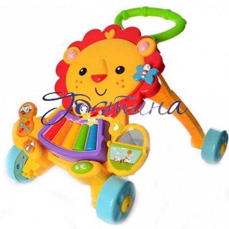 Ходунки міцно підтримуватимуть дитину під час перших кроків завдяки стійким 4-м колесам. Іграшка оснащена світловими і музичними ефектами, що сприятиме додатковому розвитку малюка