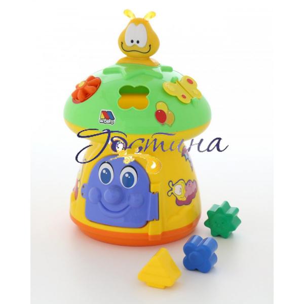 Іграшка зроблена у вигляді гриба-будиночка, з дверцями.